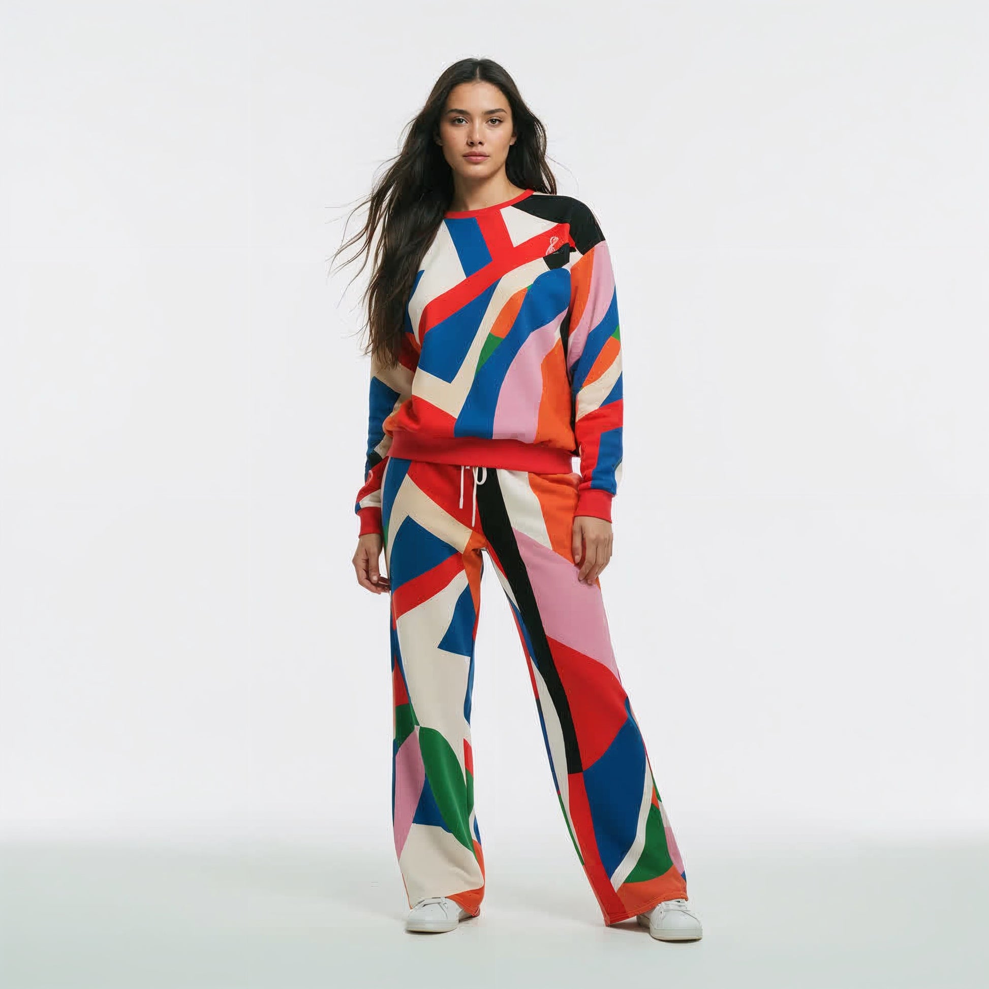 This sweatshirt pairs well with the TAPESTRY WIDE LEG ECO JOGGERS WOMENS – MAC x FAYAH